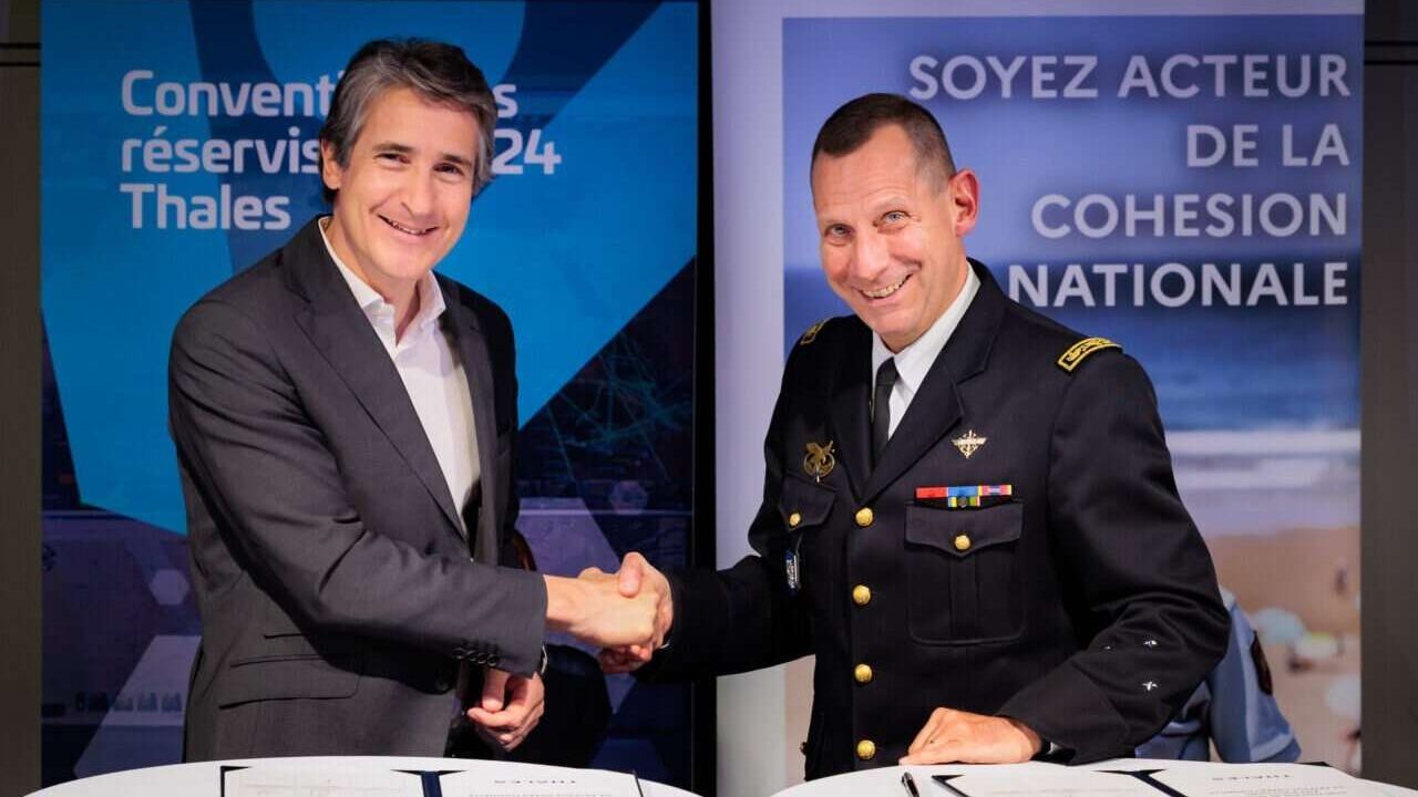 Patrice Caine, Président-Directeur Général de Thales, a renouvelé la convention de soutien à la réserve militaire en présence du Général de Division Louis-Marie Gaspari, Secrétaire Général de la Garde Nationale et du Conseil Supérieur de la réserve militaire, par délégation de signature du Ministre des Armées, Sébastien Lecornu.